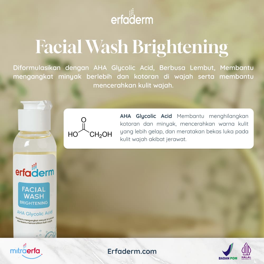 Erfaderm Facial Wash Brightening adalah produk pembersih wajah yang diformulasikan dengan AHA Glycolic Acid. Produk ini memiliki beberapa manfaat, antara lain: